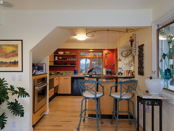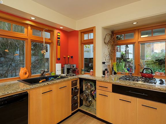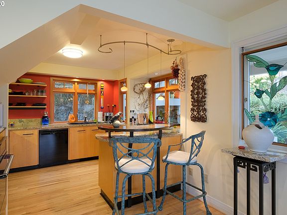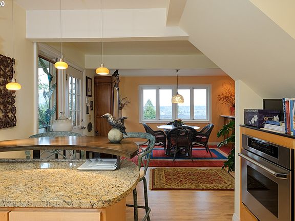 Incredible River/Mt Hood/sunrise/moonrise views from EVERY room(some Sellwood bridge) Rare 4+ car garage (1000 sqft)! Expansive, private garden w drip system, gas firepit, faucets, solar lights! Master suite w/ lrg walkin closet, jetted tub, lrg balcony!Tons of natural light, high/vaulted ceilings, granite, gas appliances, subzero undercounter fridge/freezer, counter lighting, hardwood flrs. Close:OHSU, Vet hospital, PSU, wooded trails, DT! Top floor hobby/art studio, room to add! [Home Energy Score = 1. HES Report at https://rpt.greenbuildingregistry.com/hes/OR10183017]