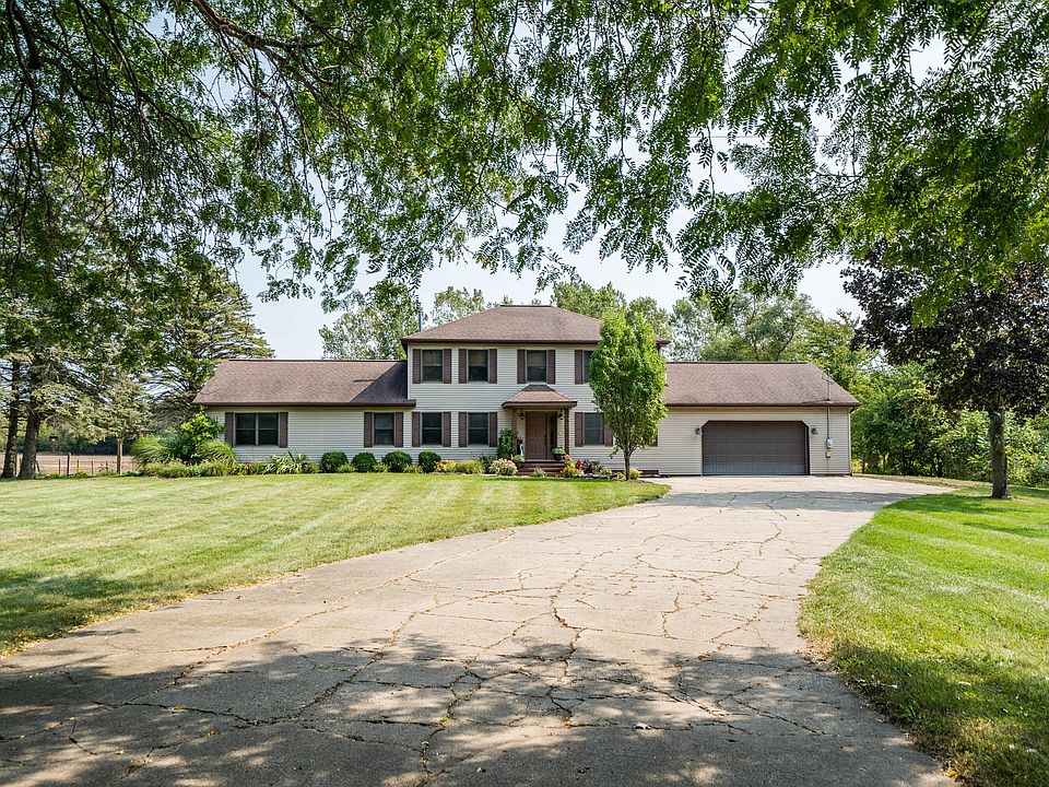 HIGHEST AND BEST BY 8 PM TONIGHT! This 2,800 square foot 5 Bedroom 2 and half bath home that is move in ready has the best of both worlds! With it's private country setting just minutes outside of Eaton Rapids. Main floor primary suite takes up the entire northside of the main floor. The rest of the main floor has a second bedroom, half bath and laundry, office, formal dining room, and the kitchen with open floor plan to living area that has a gas fireplace. Upstairs you have a second living area with the second gas fireplace, 3 bedrooms and full bath. Outside you'll enjoy the private second story deck over looking the stocked pond along with 2 Koi. Patio area under the second story deck, Raised garden for growing all the vegetable's your kids enjoy eating! 2 car garage with storage!