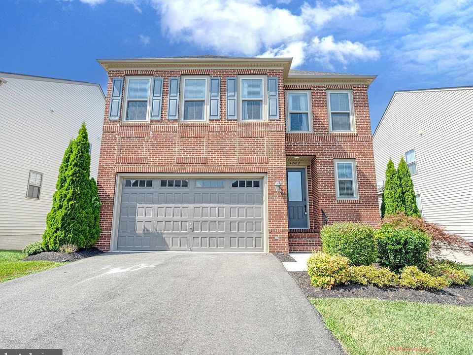 This 6 year young 5 bedroom, 4.5 bath brick front home is in excellent move in condition in the desired Eastview at Stone Ridge community awaits you! This home offers the modern touches with the luxuries to pamper yourself and your guests. The main floor offers an open floor living concept with a large kitchen, family room and dining space making this area versatile for everyday living needs. The kitchen offers beautiful granite counters with lots of space for a gourmet cook's delight, upgraded white cabinets, spacious island with bar seating, custom tile backsplash, stainless appliances including a gas cooktop and hood and great dining area space. Enjoy meals on the large composite deck off the kitchen that spans the whole width of the house with stairs to the ground level. The large family room offers a great transition from the kitchen and is perfect for entertaining with a gas fireplace. The den/office space offers the perfect home office, study area for privacy when needed. This floor offers beautiful upgraded dark hardwoods and allows immediate access to the spacious two-car garage. The bedroom level offers a luxurious and spacious master bedroom with a tray ceiling, large en-suite bath with soaking tub and separate shower, two sinks and two large walk in closets with custom closet storage installed. The three other bedrooms offer spacious rooms all including custom closet shelving with one having its own en-suite private bath and the large laundry room on this level makes laundry a pleasure to do. The fully finished basement offers lots more living space with a large recreation/additional family room area, another bedroom perfect for guests or an exercise room and a full bath with walk out to a beautiful custom large paver patio offering two levels (deck with stairs and patio) of outdoor space to enjoy and relax. The storage available in the basement is amazing. Custom window treatments throughout. Great Community amenities including pools, paths, gym and tennis courts. Quick access to great shopping and food, major routes and Dulles Airport.