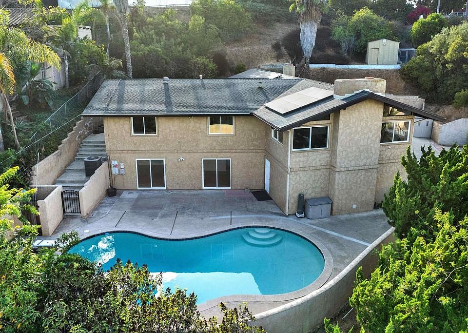 Enjoy the privacy of this private custom Mt Helix home nestled up on the hill. This spacious living areas including 2 very large living rooms with vaulted ceilings along with a primary bedroom, primary bathroom, and another bedroom on the main floor. The lower level offers its own private entrance, another large bedroom with its own bathroom, along with another bedroom and living area. This floorplan has great potential to have multi-generational living or 2 different living areas. In addition to the large living spaces, there's a beautiful, big pool along with a large owned Solar System. This one is a diamond in the rough and priced to sell!