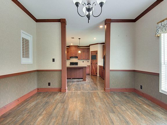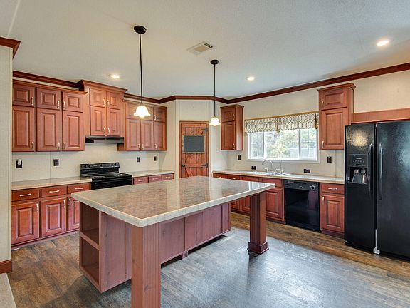 Move-in ready home on 4.5 acres!! This four bedroom, two bathroom mobile home offers nearly 2,400 square feet of living space including formal living and dining rooms, a separate den, and a huge kitchen. Hosting will be a pleasure this holiday season with the massive kitchen island with quartz counters and bar seating, newer appliances, and a walk-in pantry. When your guests finally leave, there's a cozy fireplace in the living room to cuddle up in front of. Still need to relax? Take a warm bubble bath in the master suite's soaking tub, or have a glass of wine on the wooden deck while watching the sun go down over your acreage. Speaking of the master suite, it also has double quartz vanities in the bathroom and an AMAZING walk-in closet. This is private country living at its finest with the entire lot surrounded by mature trees. The rest of the property is neatly landscaped and there's plenty of fenced in space for kids or pets to play.
