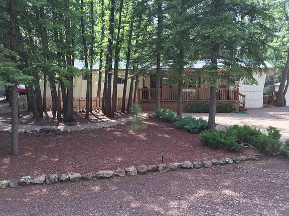 Charming 2 bedroom / 2 bath in desirable Pinetop Lakes Recreation area with an elevation of approximately 7,400'. HOA allows full privileges to the swimming pools, sports courts, playground, exercise gym, and activity center with library and WI-FI. There are lots of organized activities for all tastes and ages. Your grand kids will love the ping pong tables, billiards, and Foosball. Rustic Cabin home in the forest with tall pines, firs, and oaks. Relax on the large covered porch or next to the fire pit. Newly remodeled kitchen and bathrooms with rustic plank flooring throughout, new real hickory cabinets/vanities, counter tops, and newer white appliances. There is also a large storage shed on the property to store all of your fishing gear and yard tools. "The loop" is an excellent place for walking, cycling and socializing. Extremely friendly neighborhood. Park your RV on the large RV driveway next to the house. Excellent for summer or winter use. Sunrise Ski Resort and fishing lakes are minutes away for your enjoyment. Excellent opportunity to own a piece of the most desirable neighborhood in Pinetop at a very affordable price.