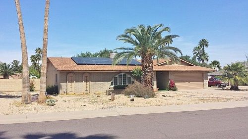 Complete info: http://4242eshangrila.StopTheCarHoney.com - Original owners offering their family estate for the first time on the market. SOLAR amenity for energy efficiency. Just under HALF acre lot with north/south solar exposure located in the middle of the subdivision. 4 Bedrooms, 2 Bathrooms. TWO A/C refrigeration and evaporative systems. Double car garage with room to expand. Plantation shutters accent the front curb appeal. Desert landscaping in front. Huge pool with a vintage slide. Extra storage areas and outbuildings. Ready for your remodeling contractor to create the home of your dreams.