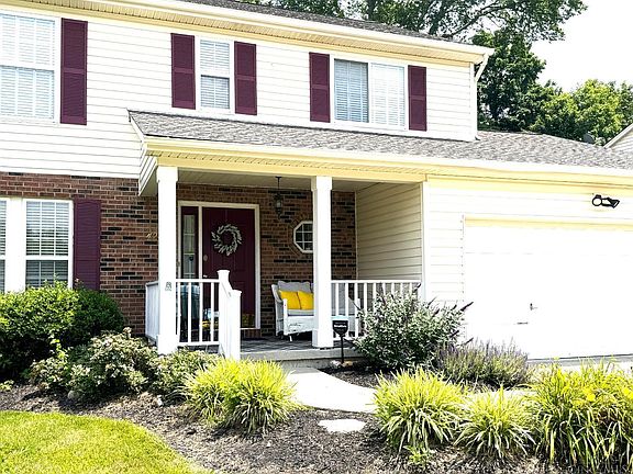 Gorgeous and spacious 2 story home in desirable Shayler Crossing! 3 bedrooms plus bonus room/study. Beautiful main bedroom suite. Open floor plan with attractive family room with walkout to private patio and features a marble/gas fireplace. Formal living room and dining room. Covered front porch. Cul-de-sac street. Bath rough-in in basement. HVAC 2022. A must see!