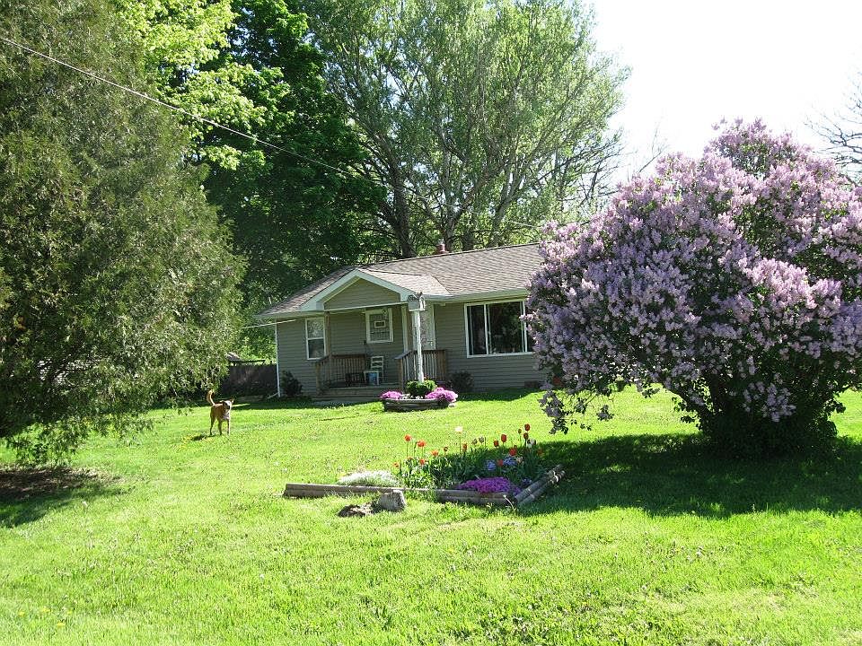 Ranch-style home with vinyl siding, Fenced in yard. 1 car garage.