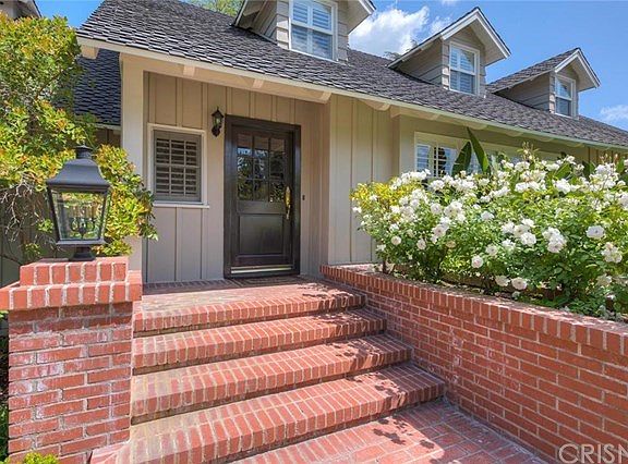 Located on a quiet cul-de-sac, this cstm 5-bdrm East Coast traditional is what everyone has been waiting for. Set on its own pvt knoll, this wonderful home is surrounded by mature landscaping & flowering gardens. The versatile floor pln includes both an upstairs & downstairs master ste. Hardwood flrs flow through the 1st floor, which includes an elegant yet functional FLR w/ frplc & an adj playroom/office/media rm. The true cook's kit is the anchor of the home & offers SS appliances, vaulted beamed ceilings, beige stone counter tops & a lg BK rm. This all overlooks the lush, pvt grassy yard, which includes a pool, a built-in BBQ, an outdoor fireplace & multiple seating areas - perfect for entertaining. The kit is open to a FR w/an addit'l frplc & French drs, which open to a 2nd brick outdoor dining patio. The downstairs master completes this level w/ 3 closets including 1 walk-in & an updated bath. The upstairs wing features 4 addit'l bdrms including another master ste, all w/treetop views & abundant natural light. This idyllic cul-de-sac home is located within the award winning Lanai Road School district & is just minutes from Westside commuter routes. A true original amid the uniformity of new construction, this home stands out proudly on its own.