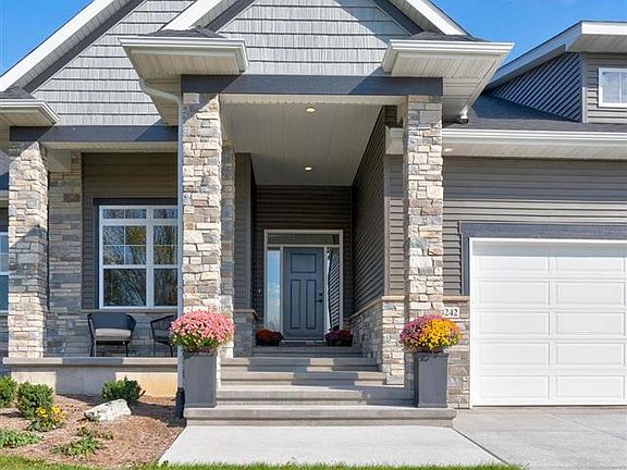 Situated on over an acre ~ this 3500 square foot, 5 bed/3 bath oasis exemplifies all of the details you would expect in a 2023 Iowa City Parade of Homes Model Home. Located inside the gated Pleasant Valley Development and Golf Course, this sprawling ranch home features an open concept floor plan, with a warm and inviting living room, showcasing the stone wrapped gas fireplace, lofted ceilings and soaring windows that all blend seamlessly into the bright and welcoming kitchen, generous pantry and adjacent laundry. find sanctuary in the main level primary suite, offering a spa like experience, with dual sinks and a fully tiled water fall shower. Storage abounds with the generous linen closet and walk in primary closet. Two more bedrooms, separated by the open concept living room, share a full bath and live as an adjacent wing. Explore the lower level to find a generously sized entertainment room, second dining area and wet bar, with two additional bedrooms and full bath. You will be impressed with the how large it lives. Your backyard endeavors await with multiple spaces for entertaining and relaxing - choose between the large covered deck or the walk out patio. Most importantly - enjoy the convenience of being seconds away from the 18 hole Pleasant Valley Golf Course with clubhouse and all the amenities, Terry Trueblood Recreation Area and all of the other close by parks and trails. Call today for a private showing to see all that this stately home and new development has to offer.