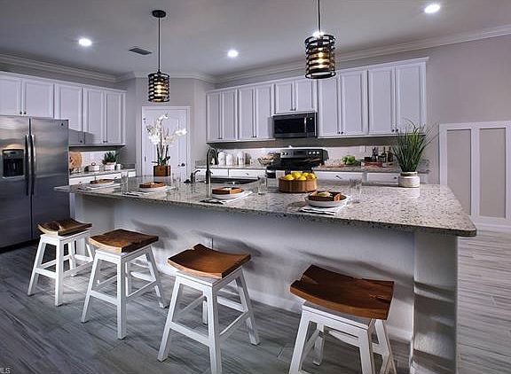 Beautiful brand new pool home ready for immediate occupancy! This popular Summerville II floor plan is open and perfect for entertaining. The home features 3 bedrooms, 3 baths, den, pool/spa and 3 car garage. The large foyer leads to the great room that is open to the kitchen and dining area. The kitchen is appointed with 42" upper cabinets, granite countertops, a large counter height island, walk in pantry and stainless steel appliances. Sliding glass doors open to the covered and screened in pool spa area. Tile is laid throughout the main living areas of the home on a diagonal with carpet in den and bedrooms. The owner's suite and bathroom is spacious with two closets. Located in highly sought after North Naples, Raffia Preserve is situated on 184 acres. This gated community is planned for 363 single family homes with 72 acres dedicated to nature preserve and lakes. The amenities include a private clubhouse offering approximately 5,000 square feet of air conditioned area and 7,000 square feet total with resort style pool with beach entry and lap lanes, a tot lot and basketball court. Indoor spaces include fitness area, a club room with fireplace and catering kitchen.