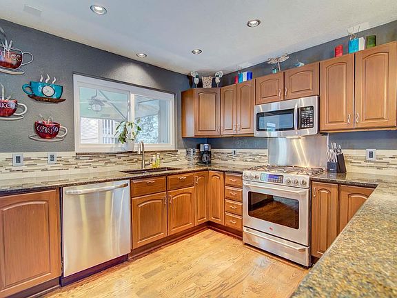 Completely remodeled ranch with finished basement in Aurora's Mission Viejo neighborhood. The beautiful open floorplan is updated throughout and includes a living room with cozy wood-burning fireplace opening to a dining area and updated kitchen with breakfast bar, pendant lighting granite counters, soapstone & glass backsplash, SS appliances and pantry. This level also features a spacious master bedroom with ceiling fan, 2 secondary bedrooms and a full bathroom. The finished basement adds lots of additional living space with a carpeted family room with wet bar, full bath and 2 additional non-conforming bedrooms with walk-in closets. The large backyard with mature landscaping is a great living and entertaining area with a massive maintenance-free trex deck with heat, TV, stereo and hot tub! New roof, newer furnace and A/C. Great location close to Cherry Creek State Park, multiple restaurants, shopping, lakes and great Cherry Creek schools!