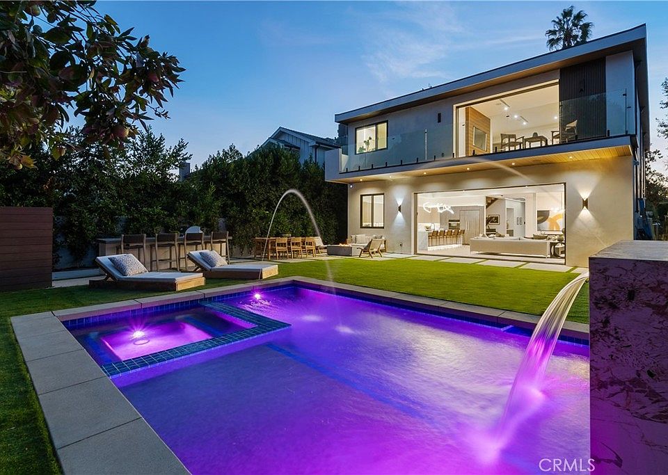 Situated on a quiet tree-lined street within the family friendly Footbridge Square neighborhood, this stunning new construction estate offers a 4 bed, 5 bath main house and 1 bed, 1 bath ADU. This state-of-the-art modern home boasts high ceilings and an open-concept floor plan that spans across nearly 4,000 sf of luxurious living space. The designer chef’s kitchen is a culinary enthusiast's dream, showcasing top-of-the-line appliances, custom cabinetry and a massive waterfall island. An oversized pocket door in the living room disappears into the wall, seamlessly extending your living space outside. The adjoining formal dining room is the perfect space to gather for a meal with family and friends. Upstairs, four ensuite bedrooms await, including a luxurious primary suite that features a private balcony, custom walk-in closet and sumptuous bathroom, complete with a soaking tub, large shower and double vanity. Surrounded by privacy hedges, the entertainer’s backyard is highlighted by a sparkling pool/spa, outdoor kitchen with bar seating, cozy fire pit, low-maintenance artificial turf yard and spacious patio. The attached ADU, with its own separate entrance and full bathroom, offers versatile potential as an office, gym or separate living space for extended family. Additional highlights include a laundry room, built-in speakers and a two-car garage. Located in the heart of Studio City within the top-rated Carpenter School District, this exceptional property is just moments away from trendy restaurants, boutique shops, the Studio City Farmers Market and so much more.