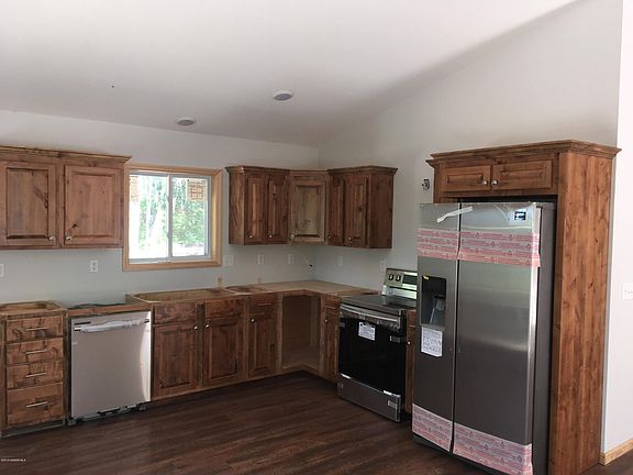 Beautiful wooded lot with plenty of room to build a nice shop or garage. This two bedroom home has a open floor plan with plenty of windows. Catherdal ceilings, Tiled floors in bathroom, front entry and laundry/mech room. Knotty Alder cabinets with soft close hardware and stainless steel appliances. This house is a must see!!