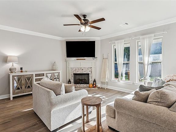 Upgraded beauty in the Estates at Silver Hill only 3 years young! Stainless steel appliances with a gas range, gorgeous granite countertops, white cabinets, gas fireplace and beautiful wood plank tile flooring in all living areas. Split floor plan featuring large primary suite on one side and 3 bedrooms on opposite side of the house. Primary bath features two walk in closets plus separate shower and soaking tub. Fully fenced in backyard that backs up to green space! Lovely front and back porches. Preferred flood zone! Come take a tour and see your new home!