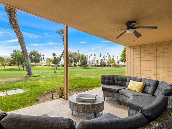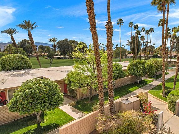 Beautiful light and bright mid century home. Golf course views will wow you. Bermuda Dunes Country Club location at its finest. The club house is just down the street. Jump in your golf cart in your own backyard. Large kitchen, Living and Dining area with wall of glass to soak in the views. Both bedrooms have access to private east facing courtyard.Enclosed laundry room in the rear patio area. One car garage with automatic opener. 2 pools steps away. HOA dues are $1,410 a quarter and $209 a month include, water, trash, landscape, pools, guard gated security, Spectrum Cable and Internet.