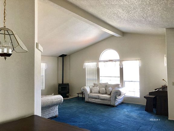 Serenity and peacefulness will be found in this 1992 manufactured home with 3 bedrooms and 2 bathrooms and over 2,300 sq feet of living space! Upon entering this property you will notice the beauty and open space that is all around you. You will enter into the living room and dining area with a great built in cabinet, vaulted ceilings and a lovely pellet stove to keep you nice and toasty, good sized kitchen with center island, frig, dishwasher, propane oven, and a beautiful corner window. The family room in this home is huge, has a wet bar and a wall full of built in shelves, wood burning fireplace and again great vaulted ceilings. Two of the bedrooms are good sized, the master is massive walk-in closet & soaking tub w/separate shower. The laundry room in this one is very large and has great storage with a door leading outside. The newly painted deck is a great place to sit and enjoy the weather or a lovely cup of tea. There is a 50' by 50' metal workshop out back with an attached 25' by 50' covered carport, There are many gorgeous trees for a park like setting. BRAND NEW ROOF!! Freshly painted exterior. This one's a goodie!!