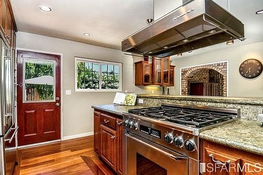 More photos coming. Not to be missed. Rancher home has been thoughtfully modernized. Home consists of 3-bedrooms, 2-baths, living room & open kitchen/dining floor plan. Gourmet kitchen with professional series appliances. Kitchen pantry with stainless steel-styled shelving. Updated bathrooms with fans. Other features: Custom cherrywood cabinets, Brazilian tiger wood floors in kitchen/dining, wet-bar with 42-bottle wine rack, recessed lights, remote ceiling fans in bedrooms, fireplace. Good-sized 13,875 square foot lot with expansion potential. Outdoor area: open patio, in-ground pool, mature fruit trees, 5-raised garden beds with drip system, dog run. Perfect home for entertaining. Stamped stonework entry and walkways. Bonus sunroom.