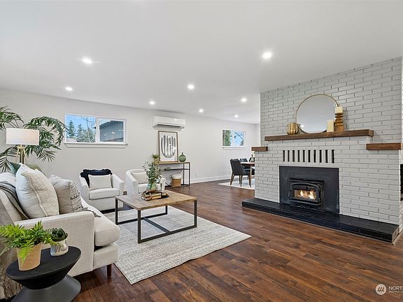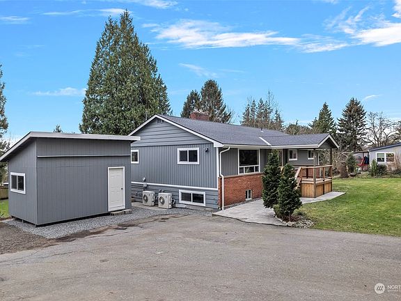Beautifully restored Mid-Century Modern 3,180sqft home w/two separate living areas on a shy 1 acre parcel w/its own private pond. This home has been fully restored w/a new roof, new appliances & cabinets upstairs, fresh paint inside & out, new primary bathroom, new flooring, new deck, new front porch, new lighting & plumbing fixtures, new fireplace inserts - all professionally done. Home features 4 bedrooms plus den. Enjoy as a large SF home or rent out the downstairs as it is set up as an attached ADU. Perfect multigenerational home. Outside you'll find a convenient U-shape driveway, a workshop/craft hut, a pond, an athletic court, fire pit & lots of garden space & room for RV parking. One mile from shopping, schools & border Xing