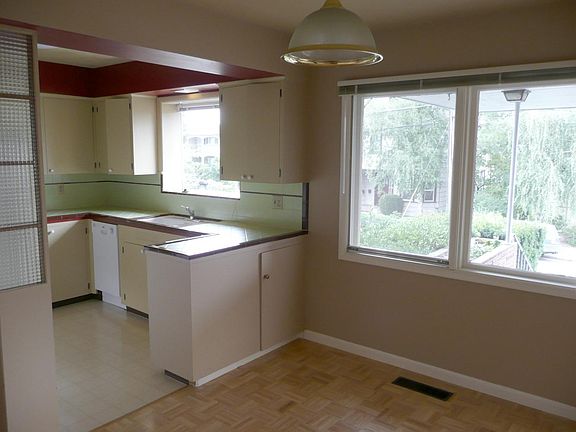 Open House 5:00 - 6:30pm on Friday February 19th. Mid-Century Modern Townhouse. 1,500 square foot corner unit in an immaculate and original brick side-by-side duplex with attached garage and private deck. The roomy 1,000 square foot main floor is raised off the street for a great combination of views and light without sacrificing privacy. An open floor plan includes a large living room with berber carpeting, picture windows for lots of natural light, a dining area with pantry, and an open kitchen. The hallway has a deep closet for storage and leads to a large tiled bathroom and two large bedrooms. Each bedroom has deep closets and built-ins with period details. Out back is a private deck shaded by maintained landscaping that wraps the entire property. Downstairs is a 500 square foot bonus room basement with washer & dryer, 2nd bathroom w/ tiled shower, lots of room for storage, and access to the attached garage. The garage and driveway have room to park two cars off-street and provide additional storage. This residential neighborhood is walking distance from OHSU and a few minutes to downtown, PSU or Lewis & Clark via bus service on nearby Barbur Blvd. Schools: Ainsworth, West Sylvan, Lincoln Owner pays water, sewer, trash, and landscaping.