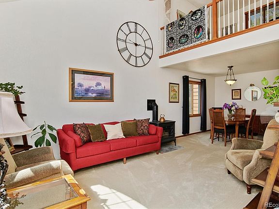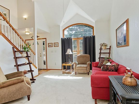 Wonderful Elizabeth home on 2.9 treed acres! Peaceful setting backing to 30 acres of open space with trails! Vaulted living and dining room with charming gas stove - ideal for formal or informal entertaining! Sunny and bright eat-in kitchen with abundant cabinets and countertops, wood floors, and all stainless appliances included! Spacious family room with gas fireplace is adjacent to the kitchen - perfect for gathering with family on cool Colorado evenings! Step out to the deck and enjoy quiet open space views! Upstairs is a large loft that would work well as an office or playroom, and a vaulted master suite featuring a walk-in closet and private 5-piece bath - a true retreat! Two sizeable bedrooms share a full hall bath! The walkout basement is fully finished and boasts a large rec room with a wood-burning stove, a bonus room that can be used as an exercise or hobby area, and roughed-in plumbing for a future bath! Kids and pets will love the huge fenced backyard, and there's also a garden area and 2 sheds for storage of garden tools, bikes, and more! Extra special features include newer roof with Class 4 shingles (5 years old), whole house filter, central vac, electric awning on the deck, and an oversized 3 car garage (refrigerator in garage is included)! Convenient location - just minutes to the Town of Elizabeth, and less than 30 minutes to Parker! No farm animals are allowed. This home is as neat as a pin and ready for move-in!