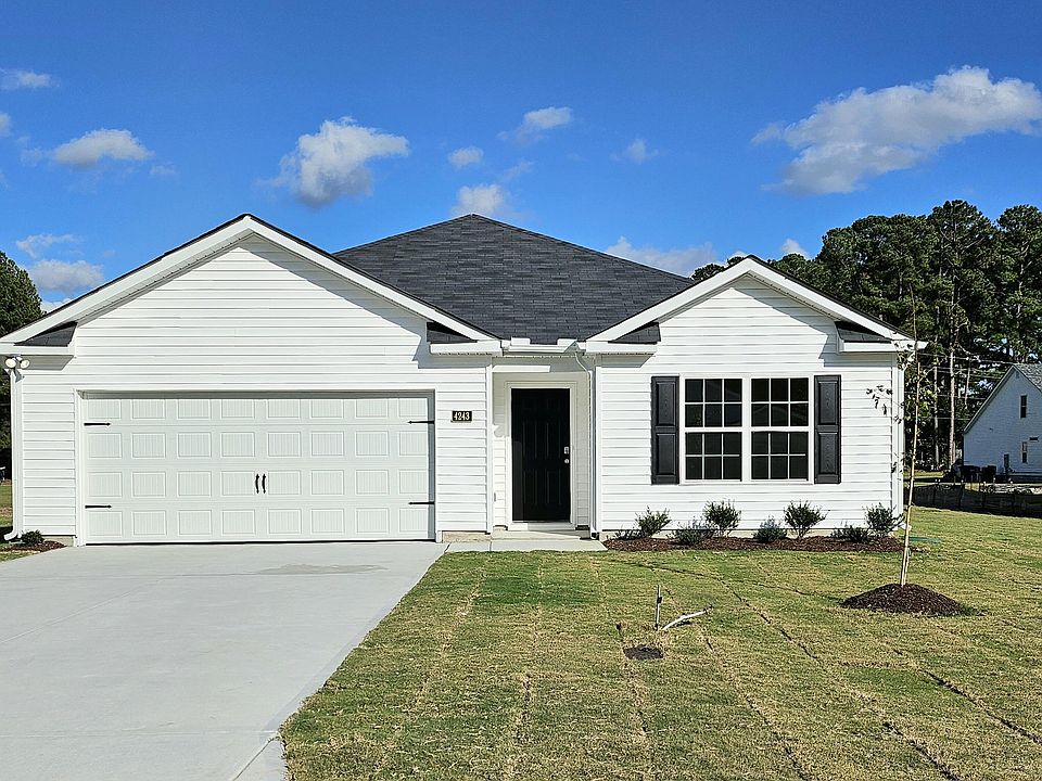 The Cali floorplan is one level living at its finest. This ranch style home offers 4 bedrooms, 2 baths & very inviting layout. The kitchen features a generous center island & is highlighted with Majestic White/Valle Nevada granite counter tops, stainless steel appliances, amazing Cane Shadow (Grey) cabinets & ample corner pantry. Wool Oak vinyl Flooring is located throughout the main areas, bathrooms & laundry room in the home that offer elegance and extreme durability. Great sized Primary bath with large walk in closet, featuring a huge walk in shower & large linen closet! Relax under your covered patio on this GREAT homesite! All bathrooms feature Quartz Blanco Maple countertops. As always a D.R. Horton home is built with quality materials and impeccable workmanship. The home comes with a one-year builder's warranty & a ten-year structural warranty. Your beautiful new home will come equipped with a smart home technology package which includes an Qolsys IQ Panel, a Honeywell Z-Wave thermostat, a Kwikset Smart code deadbolt, a Skybell Video doorbell, Smart Switch front porch light all at the front door. One Amazon Echo Dot will be installed by a division of ADT Safe Haven. The technology allows homeowners to monitor & control their home from the couch or across the globe.When buyer uses the builder's preferred lender and closing attorney they can receive discounted interest rates as low as 5.99% VA/FHA, as well as up to $10,000 in closing cost paid for by the seller!!!