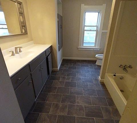 Beautiful 2 bedroom, freshly painted, new carpet, new flooring, newer bathroom, new kitchen cabinets, washer and dryer in separate basement. use of garage for storage, off street parking, central A/C Tenant pays for gas, electric and water. 1st months rent, last months rent and 1 month deposit required. No smoking, small pets allowed.