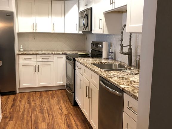 Beautiful e spacious condo totally updated in 2018/2019. End unit and first floor. Very quiet. No shared walls. Signed one attached covered parking garage and extras not signed spots in the front and side of the building. Lots of natural light. Morning sun. New kitchen with cabinets, granite counters, appliances, butcher block island and new fixtures. New LED lighting throughout. Built in makeup vanity on shiplap wall in the master bedroom. New 100% waterproof premium Coretec vinyl flooring throughout the entire condo. Both bathrooms have been remodeled with new tiles on the walls and floors, new vanities and toilets. Bathroom with exhaust fans and tubs. Four great sizes closets. Laundry room. Water included in the HOA. All new shutters in the condo and great porch/patio area to relax.