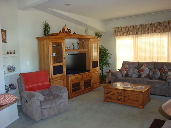 Accepted Offer with Contingencies. Beautiful sun room addition with storm windows. Bedrooms have newer double pane windows. New flooring in master bathroom. Automatic irrigation in yard. Two small outbuildings. Includes stove, fridge, washer/dryer and microwave range. Updated kitchen, furnace and heat pump new in last 2 years. Must qualify for park. 55+