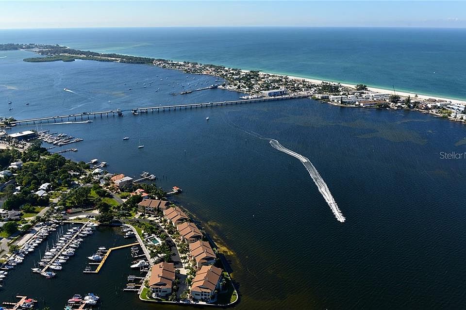 Simply Breathtaking. Experience the luxurious lifestyle and dramatic panoramic views of the Intracoastal from this amazing top-floor residence. Nestled on a gated private peninsula in the picturesque village of Cortez on the shores of Anna Maria Sound, this unique enclave of just 24 residences offers many amenities afforded by only the select few. From the 38-foot deeded deep water dock slip in the protected marina to the private elevator that opens directly in your living room, private lobby, 2-car garage, multiple balconies, and water views from every window, it is all here. This residence was completely renovated in 2014 with new impact windows and sliders, opening of the floor plan, new kitchen cabinetry, stainless appliances, Acacia wood flooring, new master bathroom, and finishing off with soaring ceilings with knotty wood pine. The windows were actually enlarged to enhance the incredible views and brand new AC just installed. This boasts having the longest driveway, the highest ceilings of 13-feet in the kitchen, the slip can have a boat on both sides, and a second wood-burning fireplace in the master bedroom. Amenities include a brand-new geothermal heated pool, spa and tennis, lush landscaping, all within a short distance to famous white sand beaches. This is the perfect locale for those who cherish the boating lifestyle and enjoy breathtaking sunsets in the lap of luxury. Come live the good life.