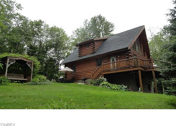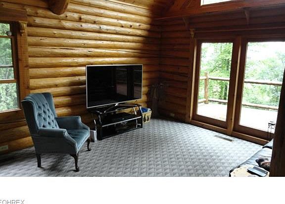 Unique log home in a beautiful country setting with 3 bedrooms and 2 full baths. Raised panel poplar doors. Anderson thermo windows. Pine tongue and groove cathedral ceilings in the living room which includes a stone wood burning fireplace and french doors to the deck. Keim oak cabinets in the kitchen. Private master bedroom located in the loft with a full bath and doors to the private balcony. Full basement includes a laundry room and rec room with a wood burner and walk out doors to the covered patio. 10 X 10 storage shed. Scenic views from the wrap around deck of the 6.2+/- acre country setting. All mineral rights owned by the owner will transfer to the buyer at closing.