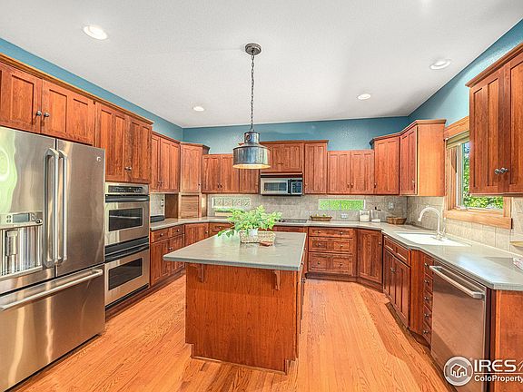 Welcome to your dream home, this stunning 5-bedroom, 4-bathroom single-owner residence blends both comfort and elegance. As you enter the home you'll immediately be struck by the vaulted ceilings and hardwood floors. The open concept main floor features a chef's kitchen that impresses with high-end stainless steel appliances, a cook flat top, Corian counters, double oven, Cherry cabinets, and a pantry. The main floor primary suite features a large walk-in closet and 5 piece bath. Don't overlook the cozy family room with a fireplace, large office and seperate dining room. Enjoy the inviting front porch, perfect for reading or soaking in the morning. Upstairs you'll find a versatile loft, 2 bedrooms with walk in closets and a full bathroom. The finished basement is perfect for entertaining with a kitchen, built-in speakers, a full bathroom, plenty of storage, and 2 bedrooms-one configured as an in-home stylist space, easily convertible to a bedroom. This home includes two laundry rooms and a 3-car garage with storage. Modern updates such as a new roof in 2020, a new AC and furnace in 2022, and a built-in active radon system enhance the property. The beautifully landscaped yard has a private back deck, perfect for morning coffee or evening entertainment. The home backs to open space and is thoughtfully landscaped with mature trees and a rose garden. Conveniently located near schools, parks, Horsetooth Reservoir, Holiday Twin Drive-In, shopping, and Spring Canyon Park only adds to its appeal. This home is waiting for you, make it yours!