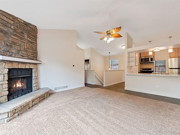 Welcome to your new 3-bedroom townhouse with a walk out basement and private gated patio. Driving up to this home you have your own private parking and a front porch. You enter the home into the bright and open living room w/ a cozy wood burning fireplace, and vaulted ceiling. Off the living room is the back deck, which makes a great added sitting area. On the main floor also has 2 bedrooms and a full bathroom. The lower level has a large living room, office area, one bedroom, a full bathroom with a newly installed shower and laundry room. The townhouse has been completely repainted and has new carpet throughout. This is in a great area near West Toll Gate Creek, Grandview dog park and plenty of shops and restaurants! Cherry Creek Schools. Great for first time home buyer or as an investment property. Ready for immediate possession! Book your showing today through Broker Bay!
