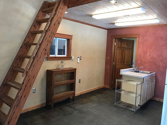 Just outside of town, a charming property awaits. Large shop setup with 220V and radiant in floor heat. Charming one bedroom apartment is attached. Property is perfect for home business. No zoning and you can advertise your home business with a 72 square foot sign.Chimney is installed and ready for wood stove.