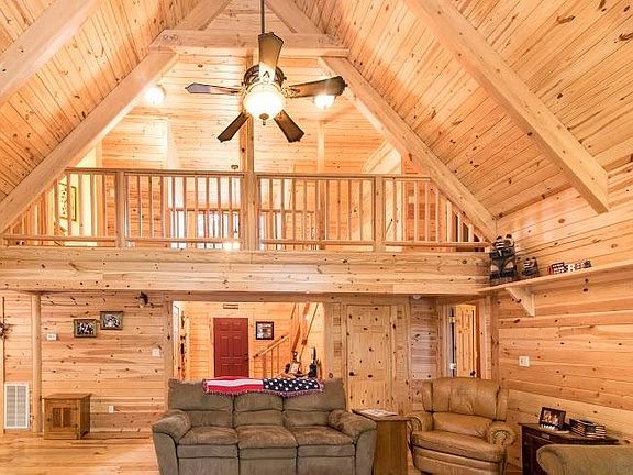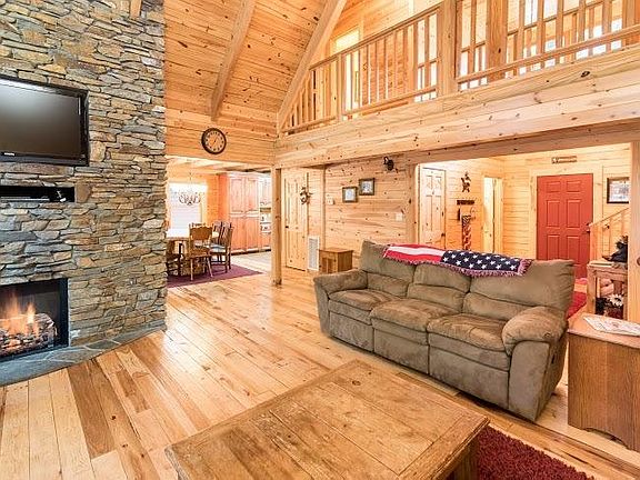 Beautiful cabin located in the prestigious Bretz Mountain features 3 bedrooms and 2.5 bathrooms. Inside the ceilings and walls are covered in warm knotty pine with floor to ceiling windows looking out into the forest. . The kitchen features beautiful granite countertops with built in cabinets and modern appliances. Master Suite is located on the main level with large bathroom complete with a spa tub and shower. Upstairs the two remaining large bedrooms are comfortably situated, each on opposite sides of the cabin. Outside, the large covered patio over looks the outdoor fire pit area while on the back side of the home is a large trex deck. Also features a detached 2 car garage. Great rental history. Call today to set your appointment to view!