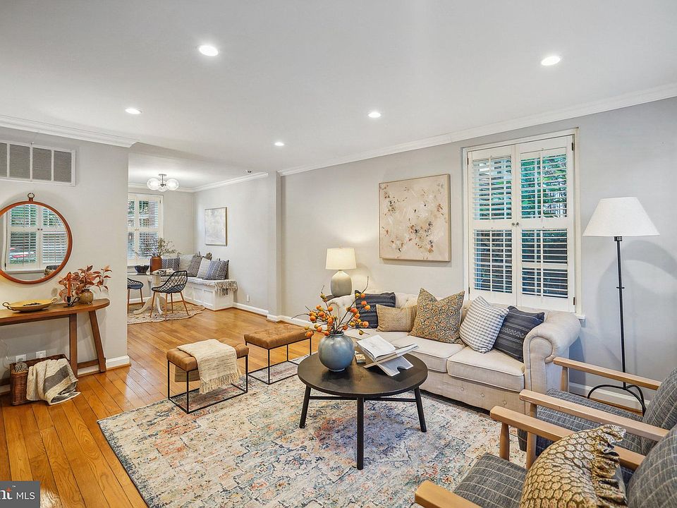 Welcome to 4245 32nd Road South! This beautiful, fully updated, 1,500-sqft Clarendon model townhome has so much to offer. Sunlight pours through large windows on three sides of the home, highlighting the original wood floors, crown molding, and open floorplan of the main level. A custom, built-in bench in the dining room invites all to sit and enjoy a meal created in the adjoining kitchen, which boasts upgraded cabinets and countertops, stainless steel appliances, and unique tile backsplash. Recessed lighting carries throughout this level into the lower level, where you’ll also find luxury vinyl plank flooring, built-in shelving, a renovated storage closet, a den, and a full bathroom with laundry. The upper level includes a renovated full bathroom with modern tile and vanity, a primary bedroom with a large closet, and a second bedroom with a custom closet system and Serena & Lily wallpapered accent wall! Back outside, the hardscaped, fenced patio is the perfect place to relax and enjoy the serenity of the surrounding area.<BR><BR>This townhome is ideally situated in Fairlington Green, surrounded by lush green space and trees, and very close to the community pool, tennis court, sand volleyball court, and dog park. The Fairlington Community Center – with its Farmers’ Market, athletic fields, state-of-the-art playground, fitness center, and meeting facilities – is just up the street. One assigned parking spot is in the lot outside the unit, while ample street parking is available for guests. Public buses run regularly through the area, with the closest bus stop just down the block. Enjoy easy access to the many shops, restaurants, gyms, and a public library in The Village at Shirlington, as well as numerous Arlington parks, playgrounds, nature centers, bike trails, and walking paths!<BR><BR> Additional Information: New refrigerator + dishwasher, 2020; Water heater replaced, 2019; HVAC replaced, 2019; Upstairs bathroom renovated, 2018; Flush-mount light fixtures throughout; Updated door hardware throughout.