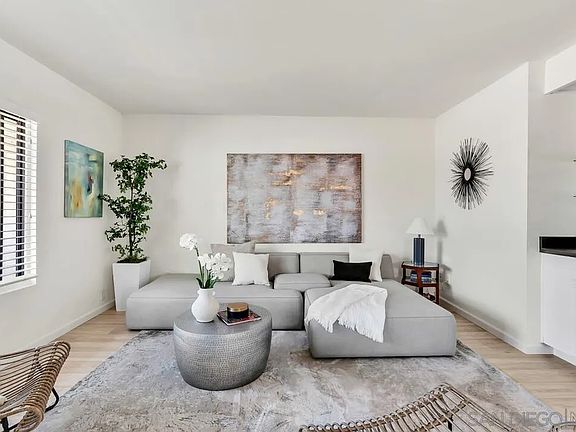 Facing west with Bay views, this top-floor, large two-bed, two-bath condo features brand-new flooring and carpet, fresh interior paint, and is ready for you to move in and enjoy. The bright and airy living space opens to a well-appointed kitchen and dining area. Both bedrooms offer generous closet space and natural light, with views of the bay! Enjoy access to resort-style amenities, including a sparkling pool, relaxing spa, and community BBQ area—perfect for soaking up the San Diego lifestyle. This unit also includes 2 parking spots (one covered, one uncovered) and is conveniently located near trolley access, trendy restaurants, shopping, minutes from USD and freeway access. Whether you're a first-time buyer or looking for a low-maintenance investment property, this low-HOA Bay Park gem checks all the boxes.