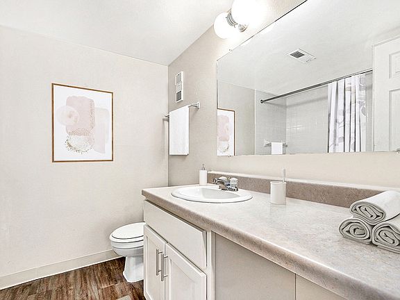 Discover the perfect living space in this pet-friendly two-bedroom apartment spanning 754-817 square feet. Enjoy year-round comfort with air conditioning and gas-forced air heating. Natural light flows through window blinds, highlighting the spacious bedrooms. The galley-style kitchen is equipped with ample cabinet space and a convenient pantry, ideal for storage enthusiasts. A defined dining area, complete with a breakfast bar, adds a touch of elegance to mealtime. Experience the luxury of large closets providing abundant storage options. With the gas for hot water, cooking, and heating included in the rent, living here is hassle-free. This apartment seamlessly combines practicality and comfort for a delightful living experience.