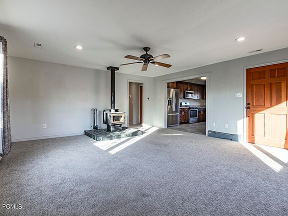 Just steps away from city center in Oakley, this quaint home features 2 bedrooms plus a flex room that can function as an art studio, nursery, or office. Ample parking entails 4 car garages structured as one detached 3 car garage/shop with loft space, and a 1 car garage abutting the home. Additionally, this cute home features a recently updated kitchen with large pantry, new carpet, spacious bedrooms, open floor plan, and free-standing wood burning stove. Outdoor features include a large, fenced yard with dog run, situated on a flat, functional lot with new landscaping. This prime location has you only minutes away from the Wasatch-Cache-Uinta National Forest, Weber River, and multiple reservoirs, providing endless year-round recreational opportunities, while also being only 20 minutes away from the bustling city life, amenities and world-renowned ski/snowboarding resorts in Deer Valley and Park City, Utah.