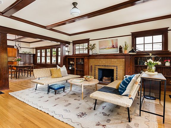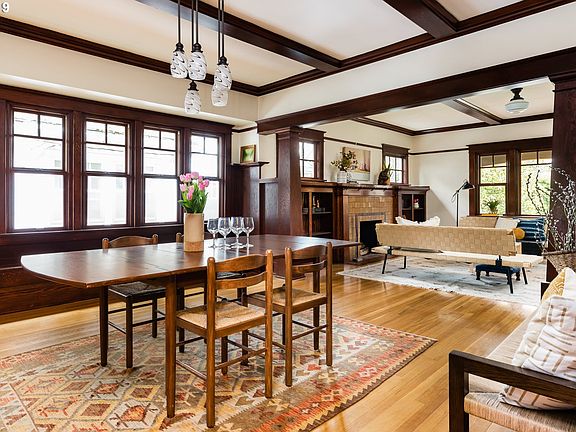 Stunning Craftsman on one of Laurelhurst's premier streets. 103-year old built-ins, wood floors and box beam ceilings blend perfectly with time period updates. Over 3,700 finished sq ft offer a gourmet kitchen with Viking appliances, formal living & dining, family room, office, laundry and 400 sq ft master suite. Finished basement with gas fireplace. Bedrooms and bathrooms on each level. Full-width front porch and low maintenance yard.