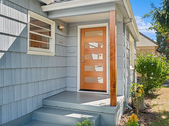 This charming 2-bedroom, 1-bathroom home in vibrant Cully showcases exceptional craftsmanship and care with meticulously restored woodwork throughout, hardwood floors, and beautiful, updated double-paned wood-framed windows. Gorgeous solid doors retain traces of their painted past and lend an artistic element to this mid-century charmer. Sweet touches and pride of ownership are everywhere you look from the custom sunburst return vent covers to the reclaimed vintage windows in the garage. Step through French doors to the raised deck and spacious back yard where the mature backyard Ginkgo tree will soon wow with explosions of fall color. Recent updates include a 2024, 30-year CertainTeed composition roof, fresh Marmoleum kitchen flooring, thoughtfully remodeled bathroom, and newly installed solid, wood front door. The oversized, tandem garage provides excellent workshop space and storage, making this property perfect for hobbyists or those needing extra room. Located just moments from the bustling restaurants along 42nd and with both Fremont & Killingsworth at your fingertips, you'll enjoy easy access to dining and local shops while residing in one of Portland's most sought-after up-and-coming neighborhoods. [Home Energy Score = 2. HES Report at https://rpt.greenbuildingregistry.com/hes/OR10241257]