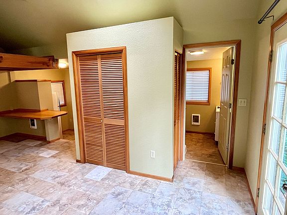 - Linoleum flooring throughout, easy to maintain and clean. Open space with skylight and ceiling fan.