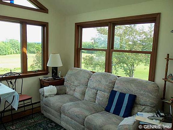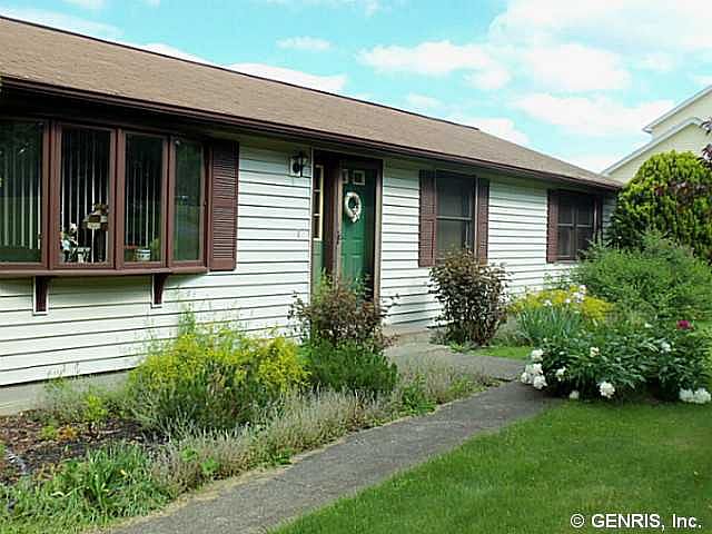 This 3 bdrm 2.5 Ranch offers the best of both worlds, just outside the Village with no Village Taxes but close enough to Schools and Village amenities to enjoy all the conveniences of the village incl public water. Sits on almost an acre lot with gorgeous views. Inside offers Central Air, vaulted ceilings, Skylights, Master bedroom w Master Ba, Large Living Rm, Eat-In Kitchen, Dining rm, Beautiful Bright and Sunny Sun Room to relax and enjoy the views, Large Full Walk out Bsmnt w workshop, cedar closet & half bath. A 2 car garage, deck and wonderful perennial gardens complete this home.