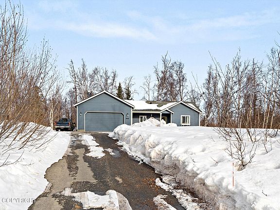 Discover the perfect starter home just minutes from Wasilla! This charming single-owner ranch home has 3 bedrooms, 2 baths, & 2 car garage. You'll love the split layout with the primary bedroom with ensuite on the opposite side of the home from the other bedrooms. Enjoy many amenities including paved drive and walkway, back deck, covered porch, mature lawn, and solid surface counter tops.