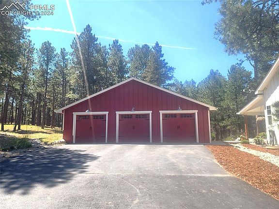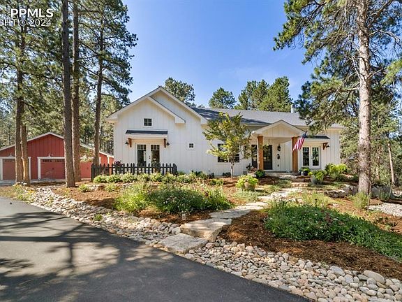 IT’S MAGICAL…Nestled amidst the towering pines on a sprawling 5+acre property lies a breathtaking custom built home w/radiant floor heat that epitomizes the perfect balance of rustic charm & modern luxury. A serene oasis, w/ natural beauty surrounding the magnificent residence. Step inside & you're greeted by an open, airy floor plan that seamlessly blends the indoors & outdoors, creating a harmonious living experience. The expansive great room, where towering ceilings & walls of windows create an effortless indoor-outdoor living experience w/ the touch of a button. The rooms 2 garage doors w/screens retract to reveal a covered 60x13 rear patio overlooking the meticulously manicured backyard blanketed in plush turf & gardens of flowers. The great room also host an amazing chef’s kitchen w/dual oven, pantry, counter microwave, a coffee bar, & a 15’ long center island w/ dual sinks. The main level also hosts the owners retreat w/ its own private patio, a private en-suite bathroom w/ dual vanities, & a large custom walk-in closet adjacent to the laundry room. Adding to the home's functionality is a powder room just off the kitchen & a mudroom which features built-in storage cubbies w/baskets & a doggie shower. Downstairs, the home offers 3 add'l bedrooms w/ attached bathrooms, a wet bar, a theater/game room, a lg. storage w/shelving & a flex space tailored to your needs. Step outside to the enchanting garden oasis, complete w/ a fenced in garden & greenhouse, where you can nurture your green thumb & enjoy the bounty of your own produce. In addition, there is an impressive 30x40 fenced/turf dog run that provides the perfect space for your four-legged companions to roam & play, while the oversized 40x32 heated three-car garage/workshop & separate 28x12 RV garage w/dump station. Storage for all your toys! Truly a one-of-a-kind property offering a perfect blend of luxurious living, outdoor splendor, & endless possibilities for relaxation & recreation. AND zoned for Horses!