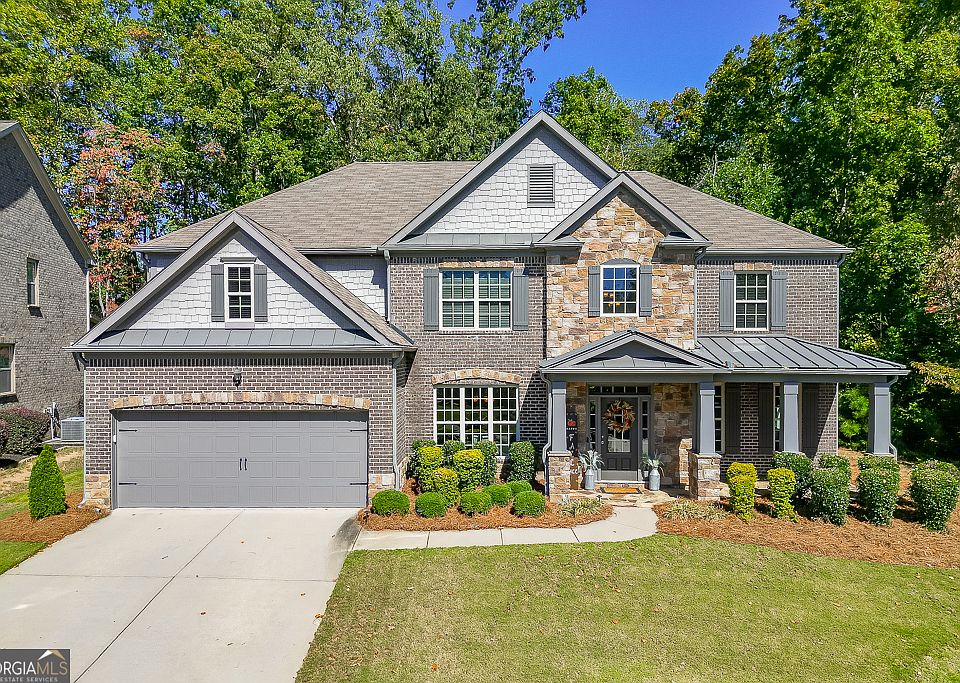 Meticulously maintained 5-bedroom, 4-bath home located in the award-winning Buford City School District. Nestled on a stunning private lot, this home showcases beautiful custom trim, hardwood flooring on the main level and custom millwork features adding warmth and sophistication to every space. The open-concept floor plan offers endless options for everyday living and entertaining. The kitchen is a cook's dream, featuring top-notch appliances, double ovens, and abundant counter and cabinet space. A keeping room with a second fireplace provides a cozy retreat, while the butler's pantry and custom mudroom blend function with style. The living room boasts a stunning floor to ceiling window wall, beautiful stacked stone fireplace and custom benches and shelving. The dining room is a true stunner with coffered ceiling, window box trim, crown molding & beautiful natural light. Don't miss the bedroom on the main level for additional sleep space, home office or playroom. Upstairs, the owner's suite is a true escape with a large sitting area and spa-inspired ensuite bath. There are 3 additional large bedrooms all with private access to a bathroom and the amazing laundry room with sink!! Outside, enjoy an entertainer's DREAM backyard complete with a covered patio, built-in Blackstone griddle and smoker, and plenty of space to gather. Conveniently located in the desirable Whispering Creeks community, within walking distance to Buford High School and the Buford Community Center, this home truly has it ALL!