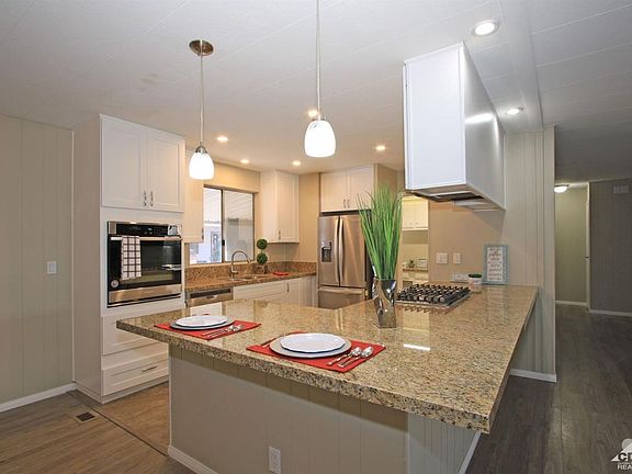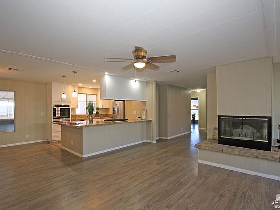 Large Home--Totally Upgraded in a great 55+ community This 1980 sf (buyer to verify sf),2bd / 2 ba. has a semi-enclosed garage, with a small workshop. Seller will Credit buyers $1,000 for window coverings and landscape. Completely painted inside and out, the kitchen totally remodeled with granite counters and all new (SS) appliances. New wood laminate flooring, bathrooms upgraded,and new doors throughout Enter thru new front double doors (glass insets) to a large living/family room offering an open design and a gas fireplace. There is a small backyard with lovely mature citrus trees. LOW HOA ($335/mo) which includes free golf (18 hole, par 3), free TV & Cable, free trash service. Clubhouse, 3 community pools/spas, fitness center, RV storage (+ $40/mo), Tennis &Pickle Ball courts, Bocci Ball, Pet friendly. Active social calendar. Located centrally in Palm Desert, CA, close to shopping, dining, entertainment. A very friendly community for a primary residence or second home.