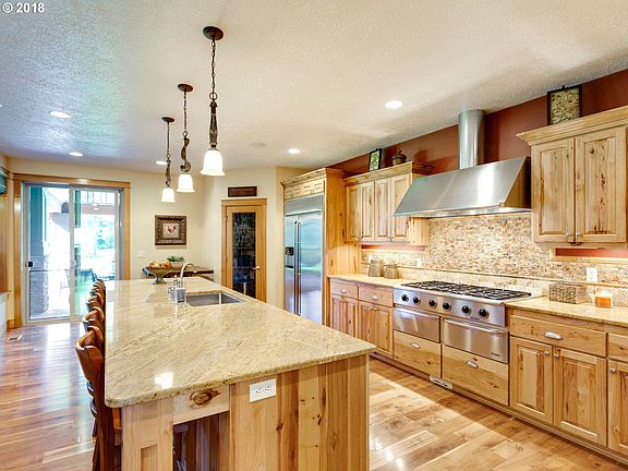 Custom Craftsman sits on 34 private acres, 30 minutes from Mt Hood, with easy access to shopping & recreation. Featuring a large covered patio equipped with an outdoor kitchen & over-sized entertainment room with bar. Master suite boasts a dual sided fireplace, massive walk-in closet & patio access. The gourmet kitchen shows off luxurious granite counter tops, Dacor appliances & warming drawers. Lastly, 2400sq ft garage with RV parking!