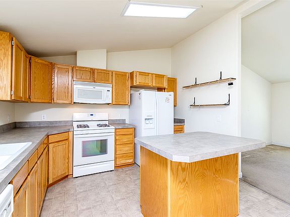 - KITCHEN: GARBAGE DISP, REFRIGERATOR, MICROWAVE, DISHWASHER, GAS RANGE, WOOD CABINETS, ISLAND, MAIN
