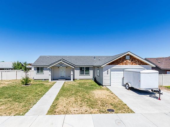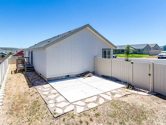 This clean and move-in ready home features vaulted ceilings, central air, and open floor plan. The spacious master suite has a walk-in closet, soaking tub and double sinks in the bathroom. The backyard is fully fenced and has a wood deck -ready for your summer BBQ! Canyon Crossing subdivision also features a fenced playground area, picnic area, and secure RV parking for those toys. Come take a look today!!