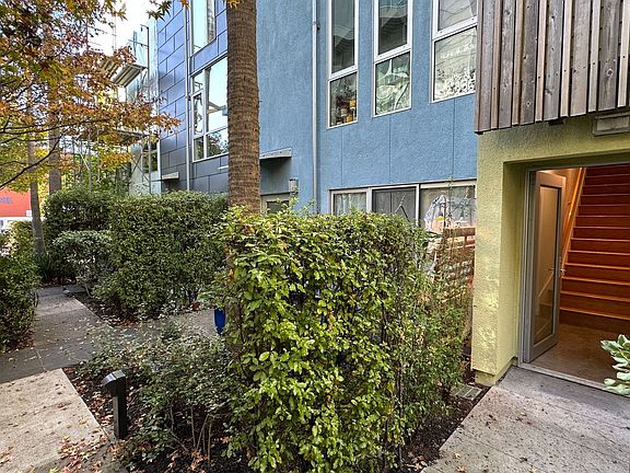 Spacious 3 Level 1BR+Den townhouse in the LEED certified Blue Star Corner condo development located in Emeryville 's historic Park Avenue District. Soaring ceilings, high end kitchen and bath with huge soaking tub set the stage for a convenient and comfortable lifestyle. The first level has an outdoor patio, a den or office and a spacious 1 car garage/laundry and work space featuring an LG high efficiency washer & dryer plus a fold down work table. The 2nd level is an open floor plan consisting of the main living space and the energy-efficient kitchen with Bosch Gas cook top and built-in microwave, separate Bosch oven, Bosch dishwasher, Sub-Zero under-counter refrigerator with separate freezer and Caesarstone counters. The 3rd level is the bedroom with a large, well organized walk-in closet and the spa-like bathroom featuring a large Japanese-style soaking tub and separate shower. In addition to the huge closet, there is also extra interior storage underneath the staircase on the second level. The Blue Star complex has 3 interior access walkways plus The Grove, a lush courtyard area with benches and beautiful plants. Included utilities are water & sewer, trash collection and complimentary internet (router supplied). A security system by Bay Alarm is installed and available for use at tenant's optional expense. No smoking please. Pets considered on an individual basis. Utilities included: Water, garbage, internet Utilities not included: PG&E Pets: Pets may be considered with an additional $50/month Laundry: In-unit washer & dryer Lease term: 1-year lease Parking: 1-car attached garage Appliances: Refrigerator, freezer, stove, dishwasher Flooring: wood, carpet, concrete Application fee: $50 Heating: Central electric Cooling: None Auguste Vende DRE#02090399 All East Bay Properties CalDRE# 01516255 *We are an Equal Opportunity Housing Provider and follow all fair housing laws.