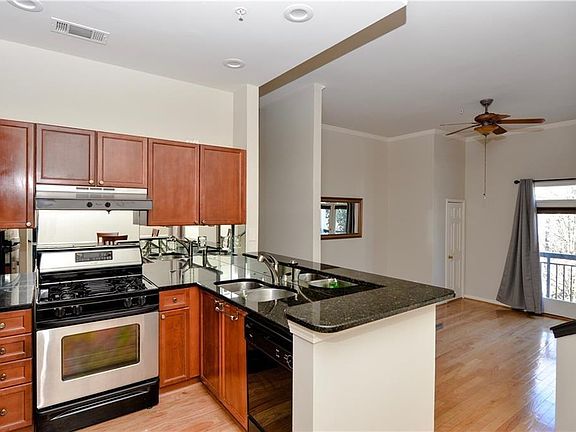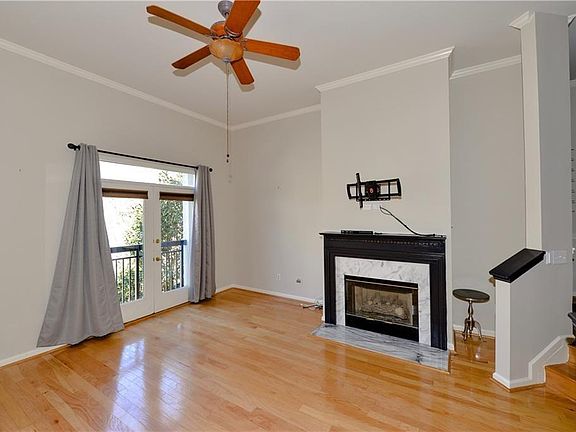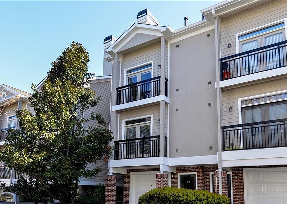 Best Deal in the desirable area of Buckhead/Vinings. Why rent?! Come live in this convenient gated community. Move in ready townhome with 1 car garage. Light fills this open feel unit with 10ft ceilings, immaculate hardwood floors, fireplace in living room with Juliet balcony and sep dining area. Additional den/office. The spacious master bedroom has a renovated bathroom and walk in closet. Granite countertops, SS appliances plus washer/dryer. Don't forget to check out the amenities which include 2 pools, grills, clubhouse and dog walk.