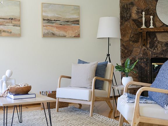 Discover the magic of this traditional gem, nestled in West Portland Park neighborhood. Perched high above the street, this home offers a sense of privacy and tranquility while being just minutes from the hustle and bustle. Expansive window line stretching across the main level living areas offers territorial views with an abundance of natural light. Open floor plan with effortless flow from the kitchen, dining and living room. At the heart of the home is a wood-burning fireplace adorned with a stone facade providing a warm ambiance for gatherings or cozy, quiet evenings alike. All beds located on same floor, including a primary en-suite and second full bath. Finally, venture outside to the low-maintenance backyard, ideal for dining al fresco, entertaining on the deck or simply enjoying the fresh air while surrounded by nature. Recent updates include: interior paint throughout, new carpet in all bedrooms, new glass shower door in primary bath, new shower head & faucet in both bathrooms, replaced back fence, new gutter guards, new garbage disposal, roof replaced (2023), new range & dishwasher (2023), re-stained deck & stairs (2023), washer/dryer (2019), and so much more! See the full list of features+updates. Convenient access to local amenities, parks & trails, top-rated schools and PCC. This move-in ready home is prepared for the next chapter! [Home Energy Score = 5. HES Report at https://rpt.greenbuildingregistry.com/hes/OR10018856]